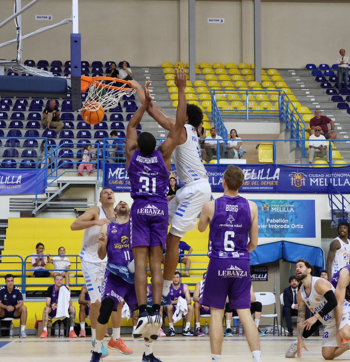 Momento clave de un emocionante partido de baloncesto en Melilla.