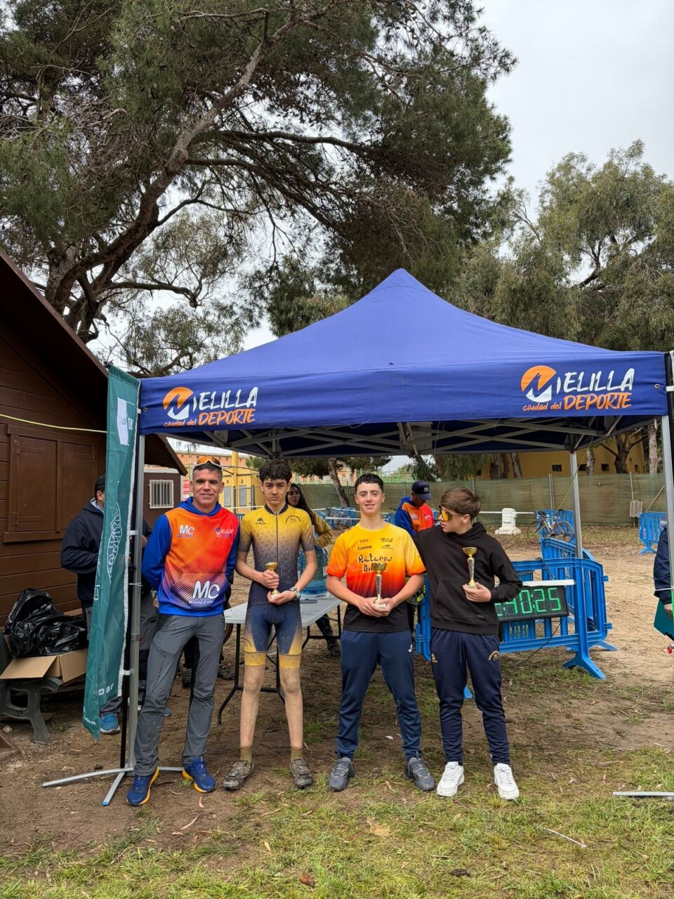 Al finalizar la prueba, se celebró la ceremonia de entrega de trofeos, con la presencia de los responsables del Centro UNED Melilla, aunque se vio muy deslucida por las condiciones climatológicas, al no haber podido montarse toda la infraestructura de meta.