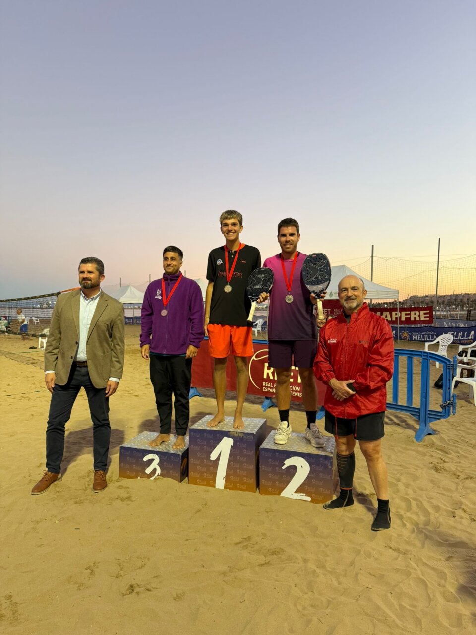 Los melillenses Nicolás Volpe y María Martínez se han proclamado campeones individuales de la categoría Absoluta del ‘II Máster Nacional MAPFRE del Campeonato de España de Tenis Playa Melilla Ciudad del Deporte’. Volpe firmó además un doblete histórico al coronarse ganador también en la categoría Sub-18, mientras que Martínez superó una exigente semifinal ante la internacional Omaira Farias antes de adjudicarse el título frente a Natalia Gómez. Sus triunfos, unidos al alto nivel mostrado por las jóvenes promesas locales, confirmaron el excelente momento del tenis playa melillense.