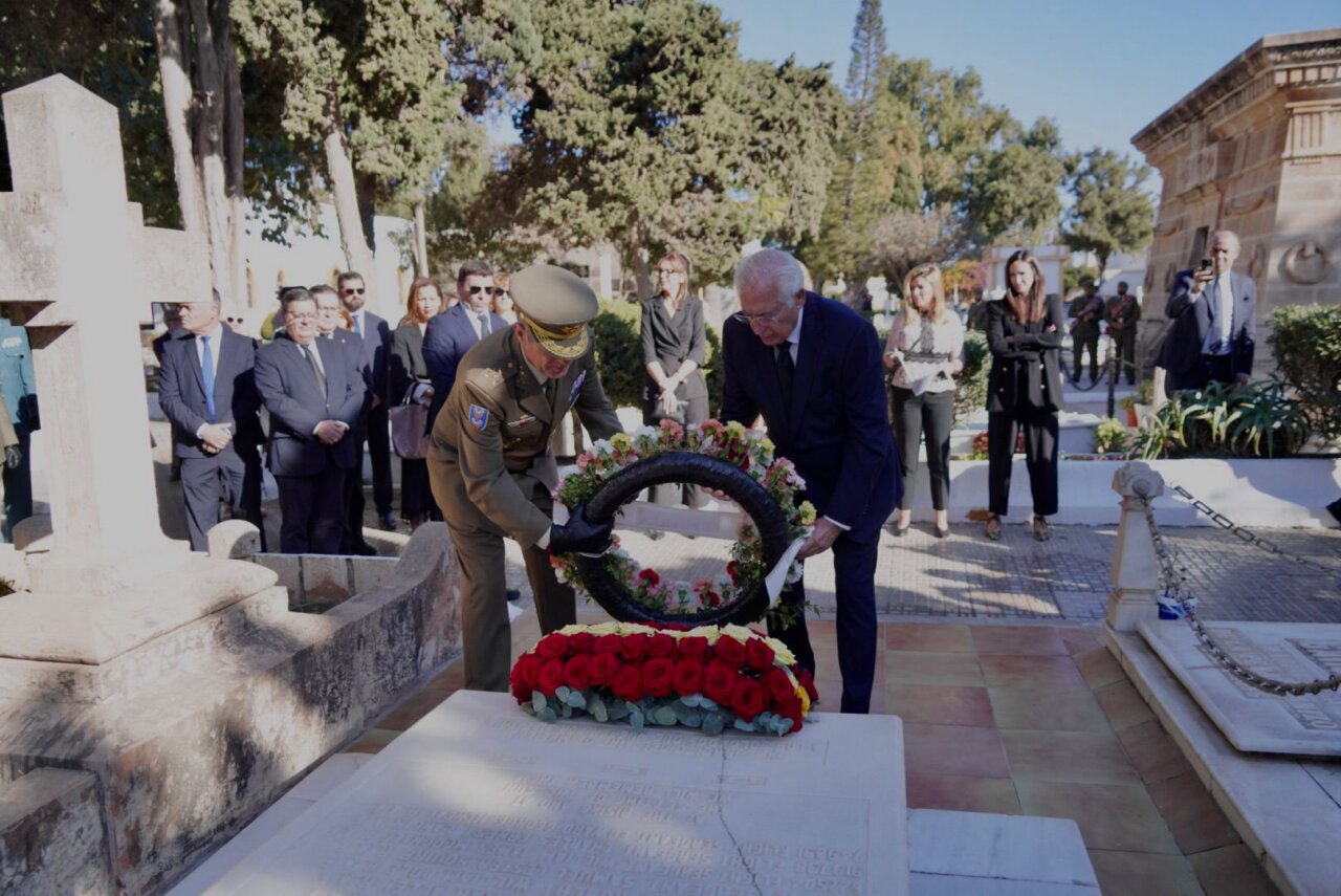 La Ciudad Autónoma de Melilla, acompañada por la Delegación del Gobierno y la Comandancia General de la ciudad autónoma (Comgemel) ha realizado este lunes por la mañana la tradicional ofrenda floral a personalidades destacadas e ilustres de la localidad norteafricana en el cementerio de la Purísima Concepción.