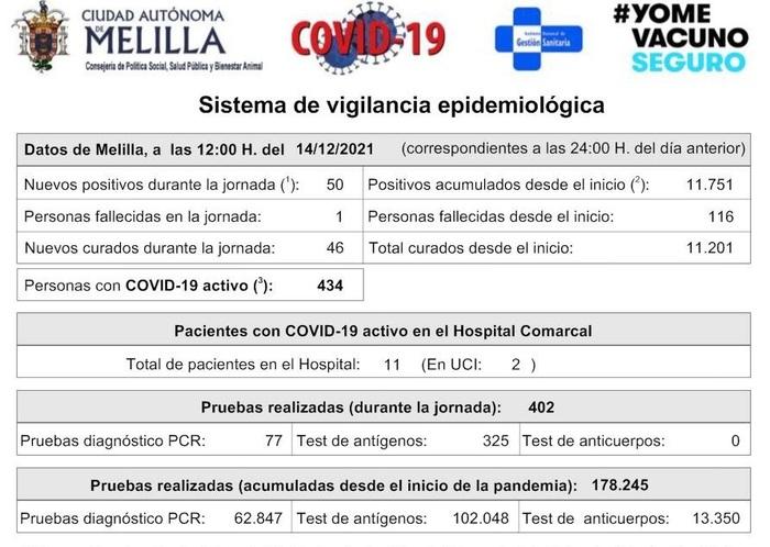 Por lo tanto, son 434 las personas con la enfermedad activa en Melilla, de las cuales 11 se encuentran ingresadas en el Hospital Comarcal, una menos en comparación con el día anterior, ya que ha bajado la ocupación en la Unidad de Cuidados Intensivos (UCI), pasando de tres a dos.