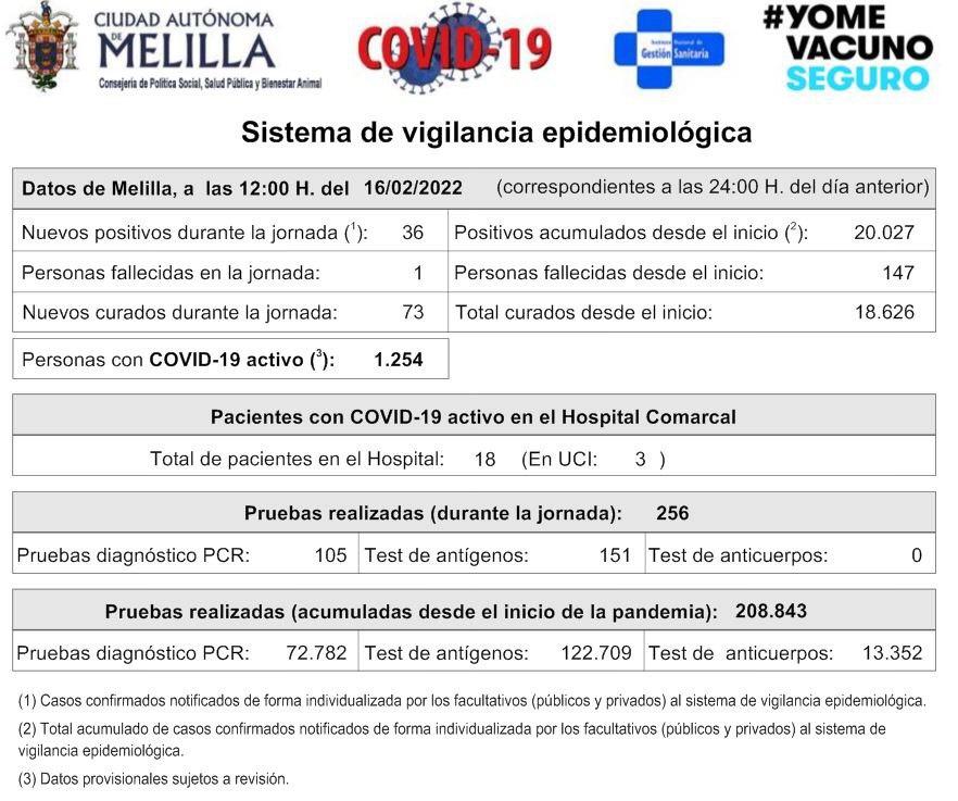 Por otro lado, las autoridades sanitarias han notificado 36 nuevos positivos y 73 nuevos curados, reduciendo a 1.254 el número total de personas activas con covid-19 en la ciudad. También ha bajado el número de hospitalizados de una jornada a otra, al pasar de 23 ingresados del martes a 18 del miércoles, aunque se mantiene igual en UCI con tres pacientes.