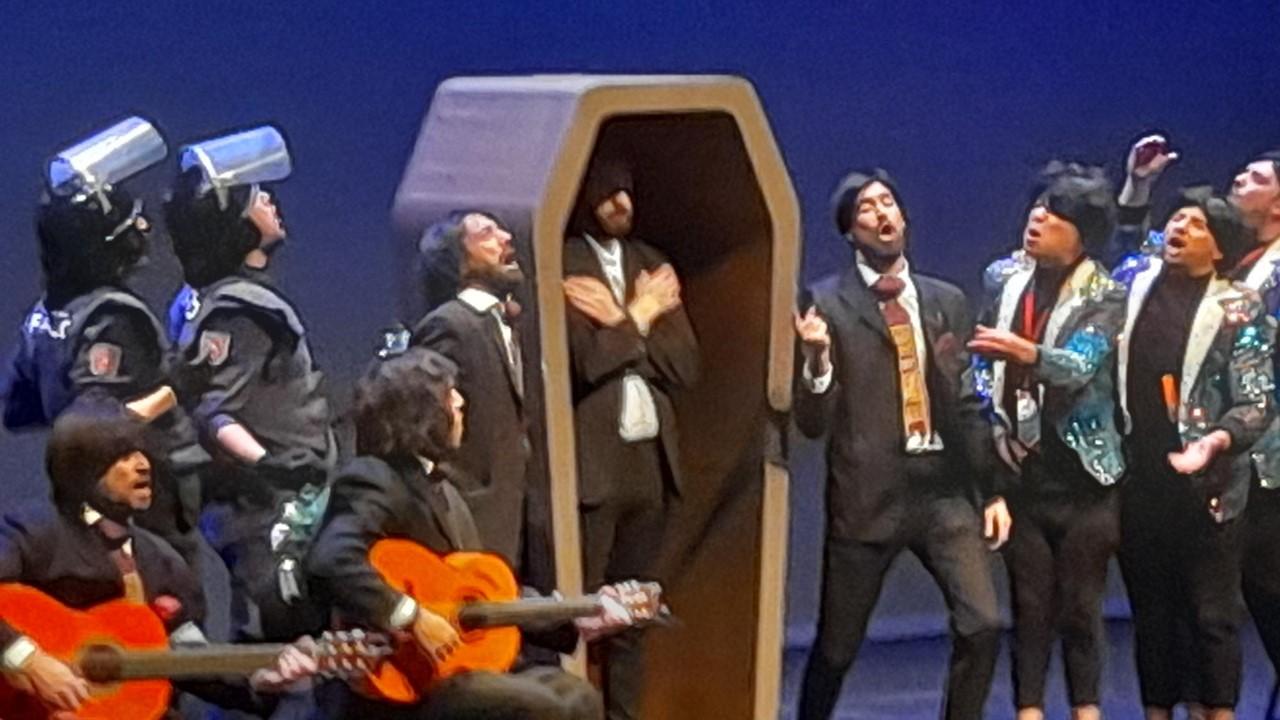 Una semana después de que Tino Tovar pusiera en pie el Teatro Kursaal con su espectáculo ‘Tinología’, la Chirigota del Bizcocho hizo ‘llorar de la risa’ al público melillense con su espectáculo ‘Bizco Show’, y desde el primer momento se llevó los aplausos y la ovación del público con su desparpajo y genialidad.