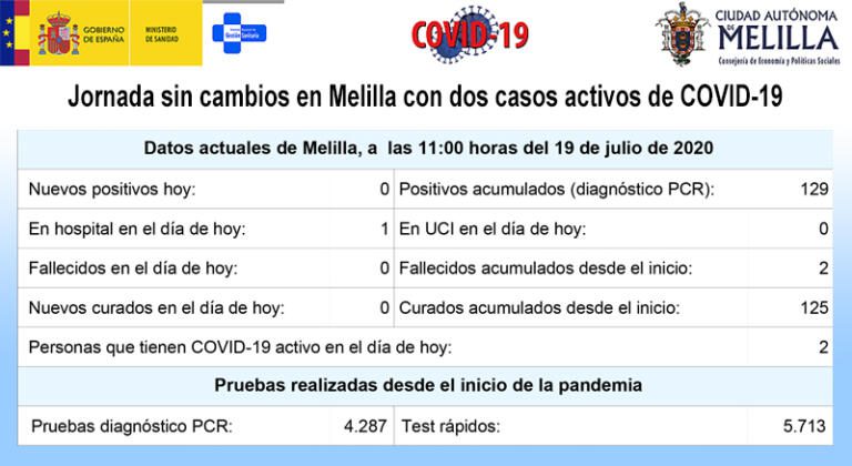 Melilla se mantiene con dos casos positivos de coronavirus, uno de los cuales se encuentra hospitalizado.
