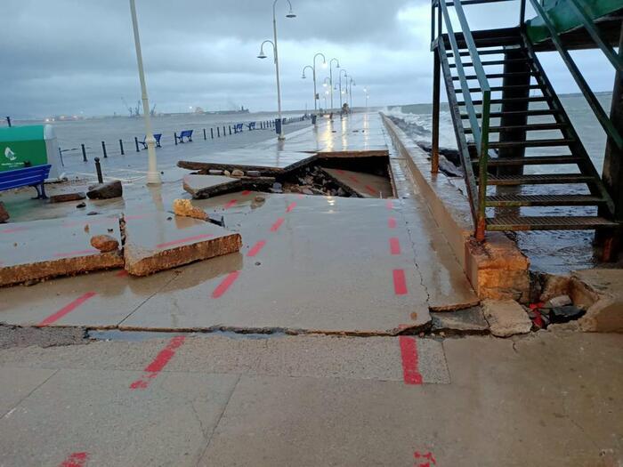 En el caso de Melilla, el fuerte viento y la interacción del oleaje han provocado daños en zonas como la playa de la Hípica donde se ha registrado la rotura en las losas de coronación del dique sur, que separa a la ciudad de la linde con Marruecos.