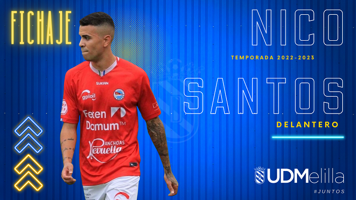 La U.D. Melilla cerró en la mañana de ayer lunes la contratación de Nico Santos Clase, delantero formado en la cantera del Fulham inglés y con pasado en el filial del Rácing de Santander, y llega procedente del C.D. Laredo para aportar opciones a la punta de ataque, en la que puede jugar en cualquiera de las posiciones. “Es sub 23, juega tanto de extremo como de delantero o segundo punta. Un delantero moderno que utiliza perfectamente las dos piernas”. Con estas palabras define el entrenador Miguel Rivera a su nuevo futbolista.