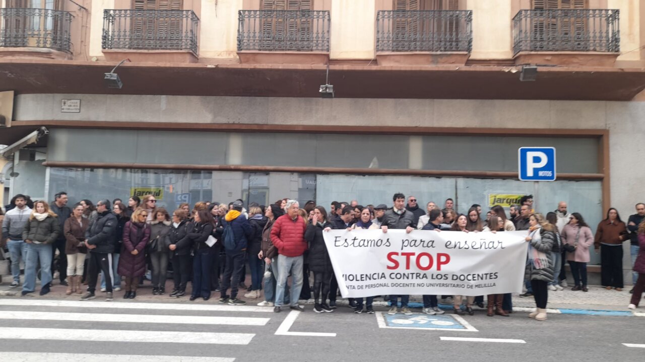 La Junta Personal de Docente No Universitario, integrada por profesores y sindicatos, ha vuelto a manifestarse en la ciudad, esta vez frente al edificio de la Dirección Provincial de Educación, para advertir del “endurecimiento” del clima escolar en los centros educativos de Melilla, así como que se están produciendo episodios de violencia hacia el profesorado que son “los mismos que se producen en el resto de la sociedad”, pero han dejado claro que “ya no podemos aguantar más” este tipo de situaciones.