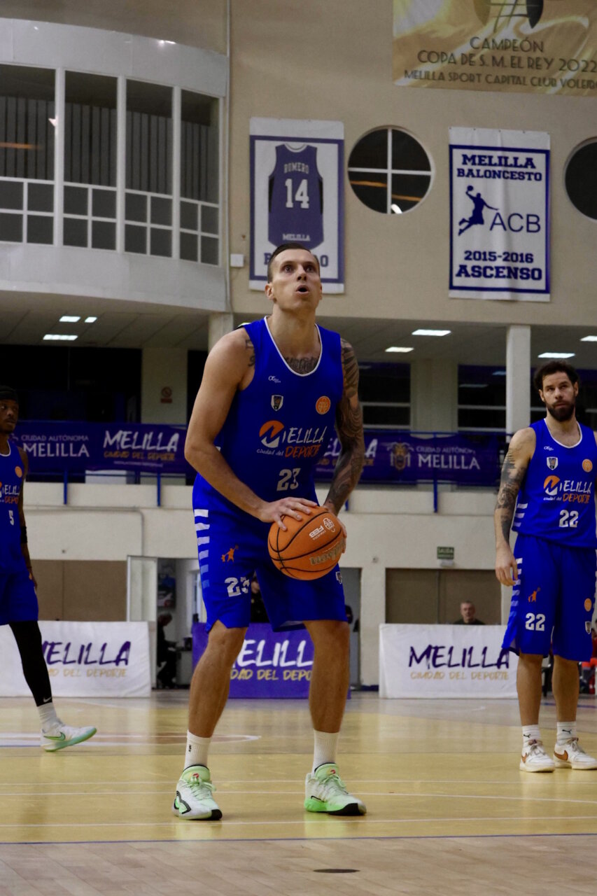 Roberts Stumbris se prepara para lanzar en un partido del Club Melilla Baloncesto.