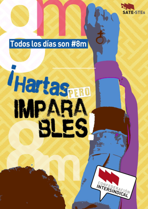 Bajo el lema ‘Hartas pero imparables’ la Organización de Mujeres de la Confederación Intersindical (CI) y SATE-STEs “volverá a las calles” hoy en este 8 de marzo con el fin de recordar que son “muchas las mujeres que siguen luchando por una igualdad real”.