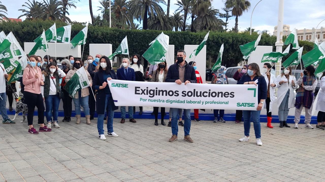 El sindicato de enfermería SATSE en Melilla se concentró ayer frente al edificio de la Delegación del Gobierno junto con enfermeros, matronas y fisioterapeutas de la ciudad para reclamar al Gobierno de la Nación todas esas demandas y mejoras de las condiciones laborales de los profesionales sanitarios.