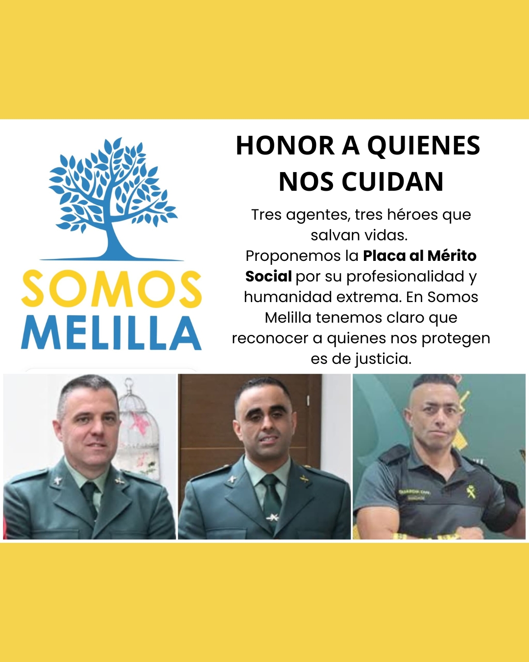 Somos Melilla, a través de su portavoz Amín Azmani, ha presentado a la Comisión Permanente de Cultura dos propuestas para otorgar la Placa al Mérito Social a tres agentes de la Guardia Civil. Estas solicitudes destacan la «heroica intervención» de los agentes en dos situaciones críticas que salvaron vidas. La primera propuesta se refiere a Nebil Mohamedi Amaruch, quien el pasado 25 de diciembre de 2025 identificó síntomas graves de ictus en una mujer en el recinto aduanero de Beni Enzar, logrando estabilizarla gracias a la rápida activación de protocolos de emergencia. Azmani destacó la «extraordinaria humanidad» del agente, quien también brindó apoyo psicológico a la familia afectada.