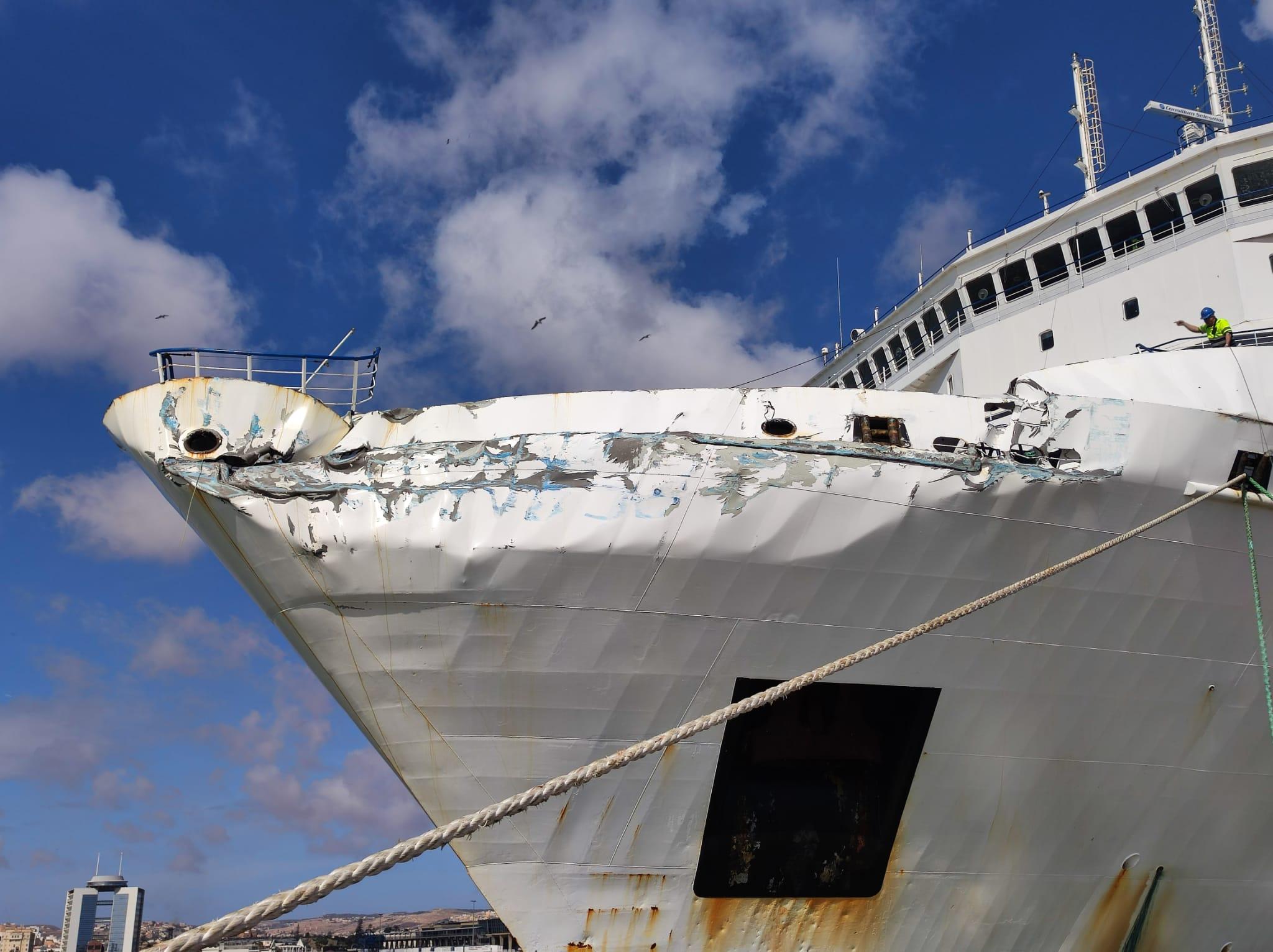 Al respecto, ha subrayado que «el leve abordaje no ha impedido al buque Napoles continuar con la navegación, con solo daños materiales por encima de la línea de flotación que afectan a la amura de babor». Uno de los contenedores de Laust Maersk, de hecho, quedó enganchado al barco de pasajeros.