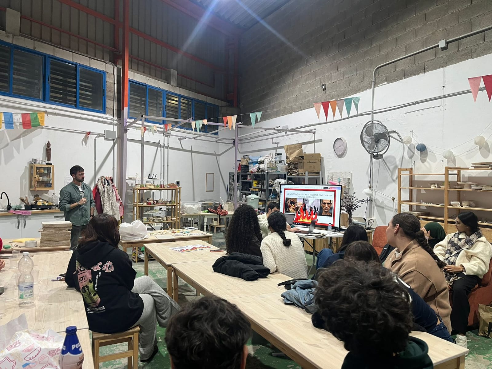 El taller de cerámica MilCien Grados fue el escenario de un café filosófico que tuvo lugar el pasado martes 2 de diciembre, reuniendo a estudiantes de diferentes institutos para un debate sobre el tema “La locura: Don Quijote y Sancho”. Esta actividad, organizada por la profesora de Filosofía Alba Velázquez y moderada por Diego Arroyo y Eloy Díaz, se centró en repensar el concepto de locura y su evolución a lo largo del tiempo.