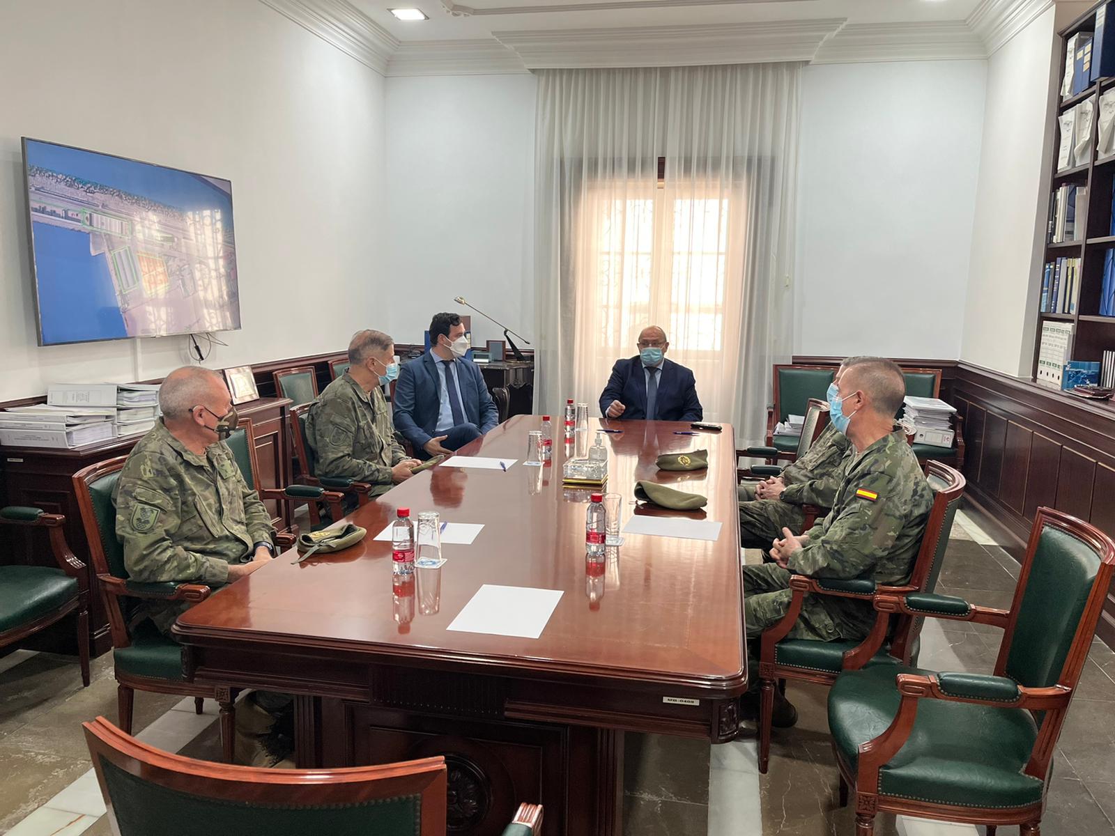 Víctor Gamero García, presidente del ente portuario de nuestra Ciudad, ha recibido este miércoles, en la sede de la Autoridad Portuaria de Melilla (APM), al Teniente General Jefe del Mando de Apoyo Logístico del Ejército, Fernando Miguel García y García de las Hijas acompañado del Comandante General de Melilla, el General de División Luis Sáez Roncadio, asistiendo a la recepción el director de la APM Luis J. Ayala Navarro, así como los componentes de la Plana Mayor de Mandos del Ejército de Tierra.