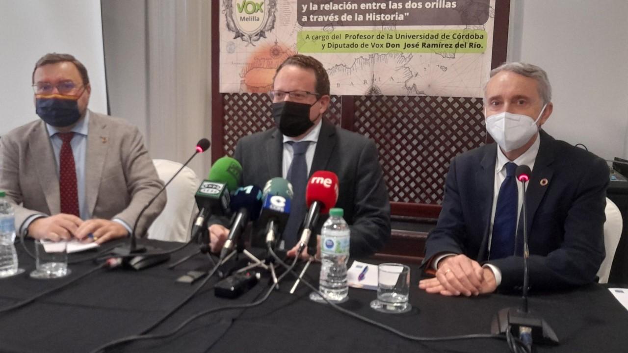 El diputado nacional de Vox por Cádiz, Carlos Zambrano, anunció en una rueda de prensa en el Hotel Melilla Puerto junto con el diputado por Córdoba, José Ramírez del Río, y el presidente de la formación en Melilla José Miguel Tasende, que el partido traerá a la ciudad diputados del partido de cada una de las comisiones parlamentarias que más relación tengan con los problemas específicos de la ciudad. En el caso de ayer fue el de Ramírez del Río, que es responsable de la comisión parlamentaria de educación, y la formación espera que en el futuro visiten la ciudad especialistas de la comisión de Sanidad y de otras áreas. Asimismo, recordó que ya han visitado la central de producción eléctrica y de la de suministro de agua. “Queremos estudiar uno por uno los distintos aspectos de Melilla”, apuntó Zambrano, quien añadió que también pretenden hacer una toma de contacto con toda la población melillense.
