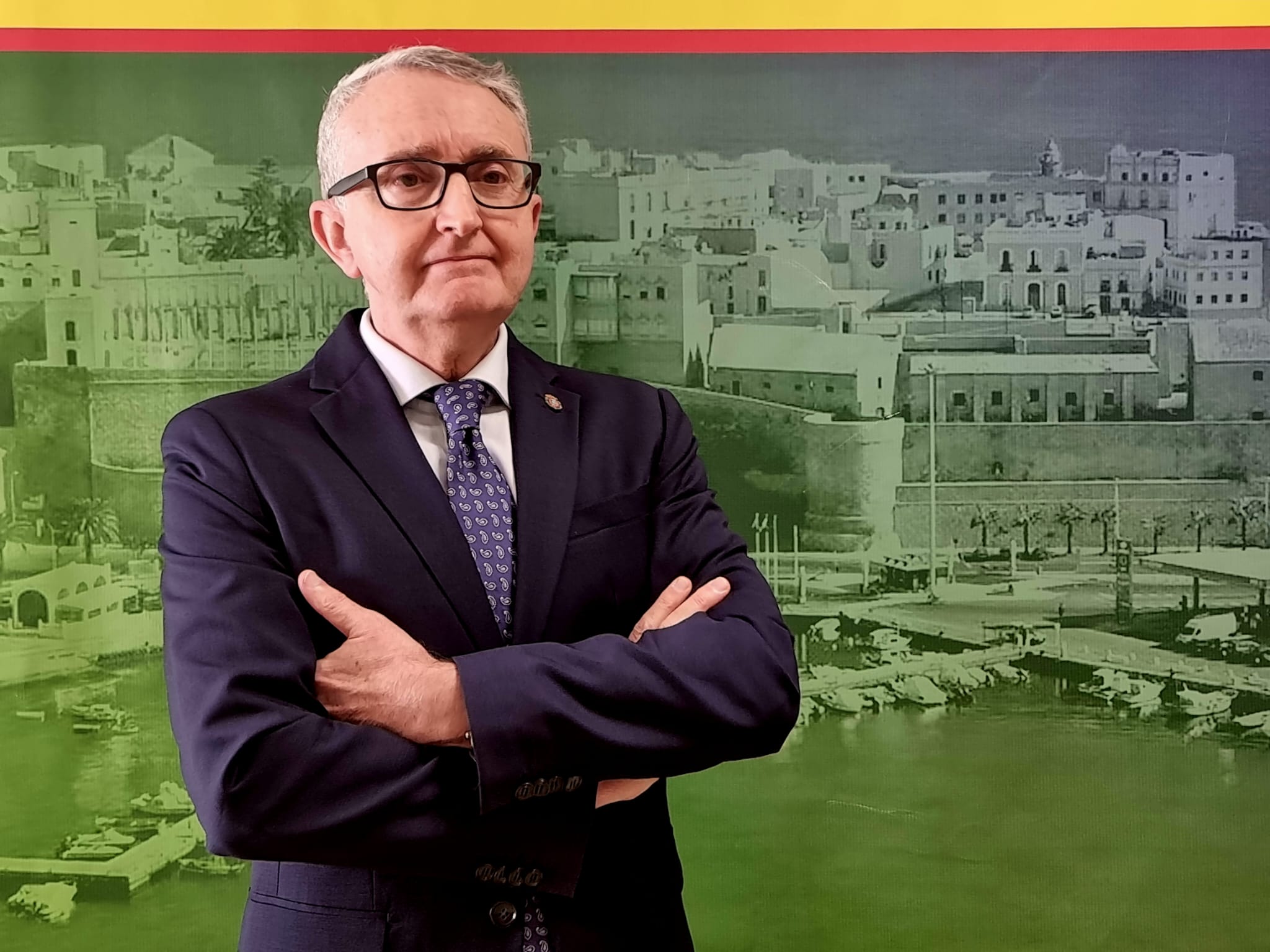 Retrato de una persona en un evento en Melilla. El fondo muestra la ciudad.