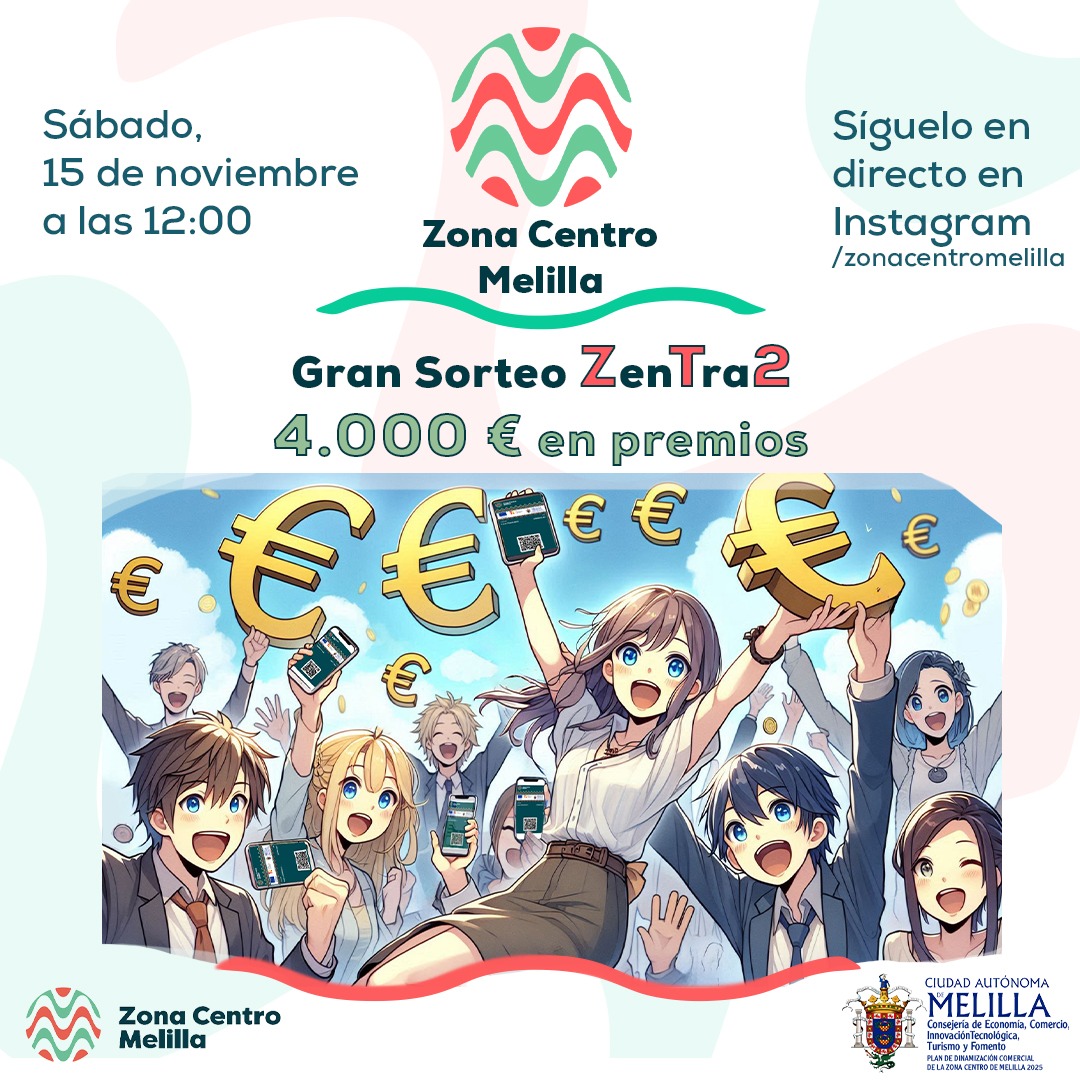 Zona Centro realizará un sorteo el próximo sábado 15 de noviembre a las 12:00 horas, a través de un directo en su cuenta de Instagram. El evento ofrecerá un total de 4000 euros en premios de saldo para las tarjetas ZenTra2 del público. Cada 20 puntos acumulados en las tarjetas equivalen a una participación en el sorteo, y los interesados aún pueden acumular puntos hasta el mismo momento del evento para incrementar sus posibilidades de ganar.